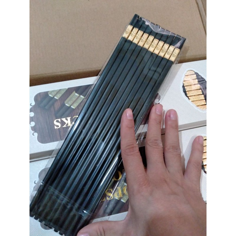 Bộ 10 đôi đũa mạ vàng kim, đũa ăn kháng khuẩn, đũa khảm vàng Hàn Quốc cao cấp chống trơn, chống trượt, chống mốc