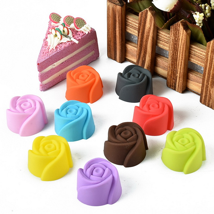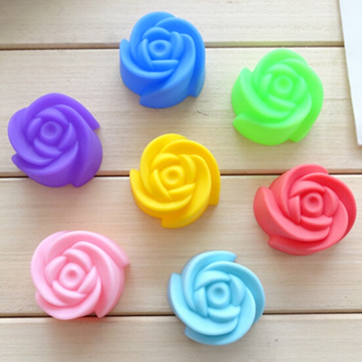 Bộ 10 khuôn silicon làm bánh, rau câu, bánh bông lan, bánh da lợn hoa hồng 3 lớp – Mã số 1130