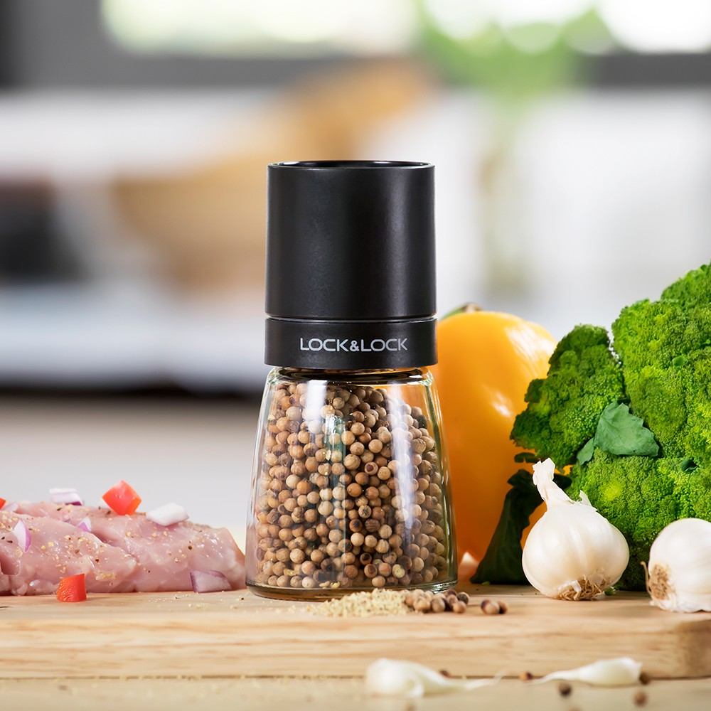 Hủ xay tiêu Lock&Lock -140ml- Màu Đen-Thủy tinh CKO115
