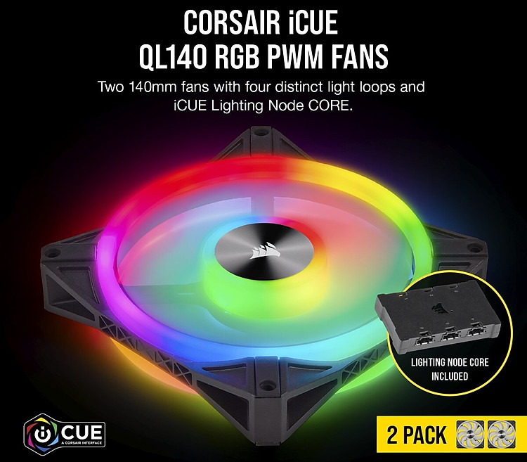 Giới thiệu Bộ 2 quạt máy tính 140mm Corsair QL140 RGB LED kèm Node Core - Hàng Chính Hãng