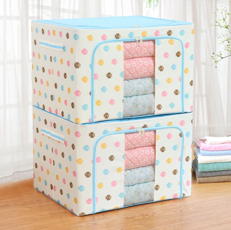 | Hướng dẫn sử dụng | Bước 1: Bóc bao bì sản phẩm, đọc thư ngỏ sản phẩmBước 2: Tháo nẹp khung sắt, cố định khung sắt vào sát thành hộp 90 độ để tạo độ căng cho hộpBước 3: Cho đồ đạc quần áo, chăn màn, vật dụng mềm vào rồi kéo khóa cất lưu trữ. |