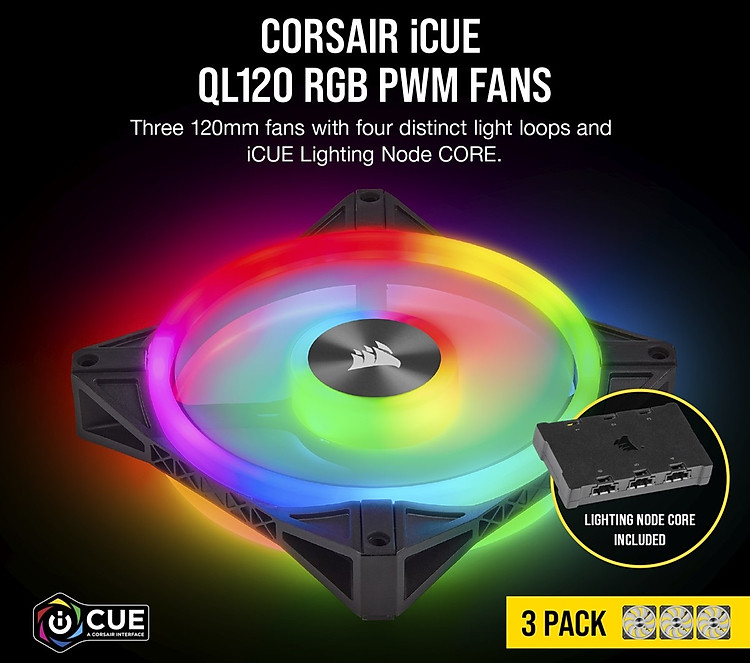 Giới thiệu Bộ 3 quạt máy tính 120mm Corsair QL120 RGB kèm Node Core - Hàng Chính Hãng