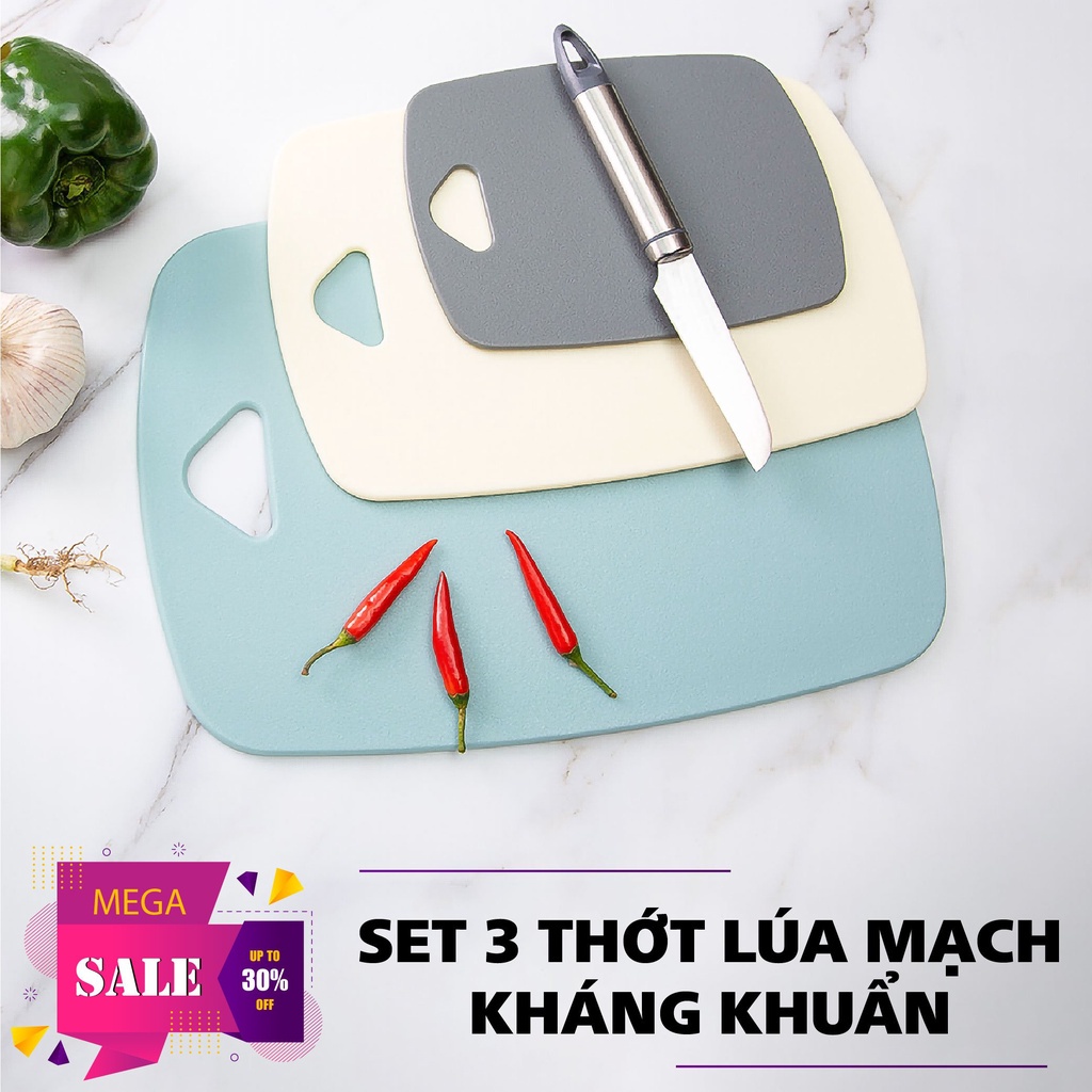 Bộ 3 Thớt lúa mạch kháng khuẩn 3 kích thước chống trượt màu ngẫu nhiên