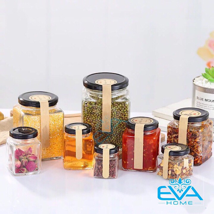 - *** Hũ thuỷ tinh kiểu dáng vuông gồm có các loại dung tích như sau cho bạn lựa chọn