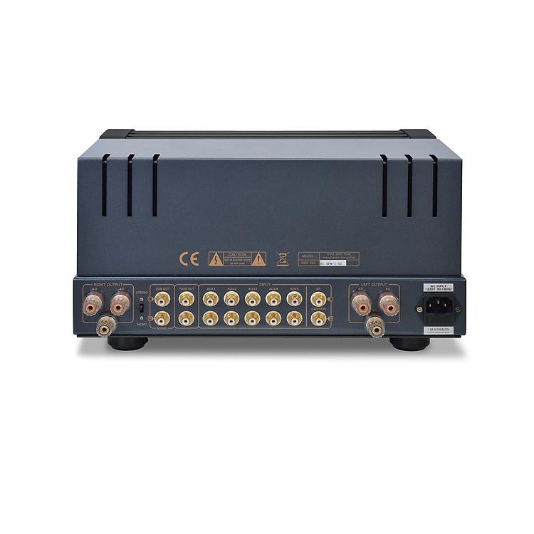 EVO 300 sử dụng 6 bóng 12AU7 để vừa làm bóng preamp, vừa chỉnh lưu cũng như làm bóng lái. Được trang bị những linh kiện cao cấp như điện trở Takman, tụ lá thiếc DuRoc, dây đấu làm từ đồng OCC mạ bạc Thụy Sĩ hay chiết áp ALPS Blue Velvet thay cho chip IC chỉnh âm lượng. Ngoài ra, EVO 300 có cổng home theater bypass có thể sử dụng cùng với hệ thống xem phim đa kênh, kèm cổng sub-out.