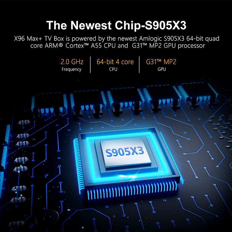 • Android Tivi box N5 Max được trang bị con chip S905X3 đây là dòng chip Quad-core mạnh mẽ của Amogic mới được ra mắt