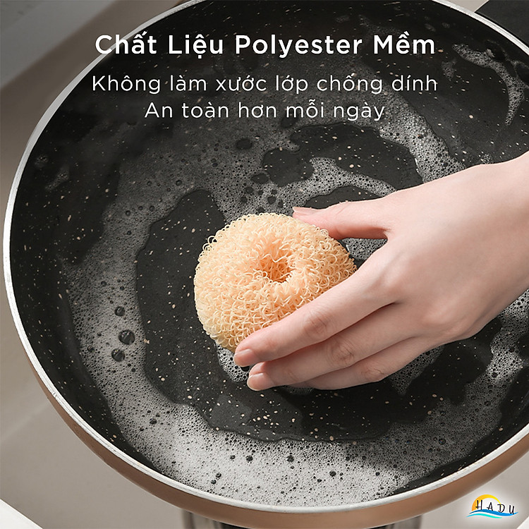 - Chất liệu bông polyester mềm không làm xước lớp chống dính.