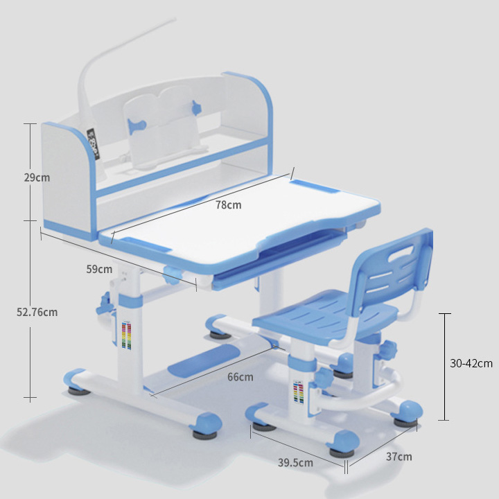 Bàn ghế học sinh chống gù cận có đèn kỹ thuật số, có giá sách
