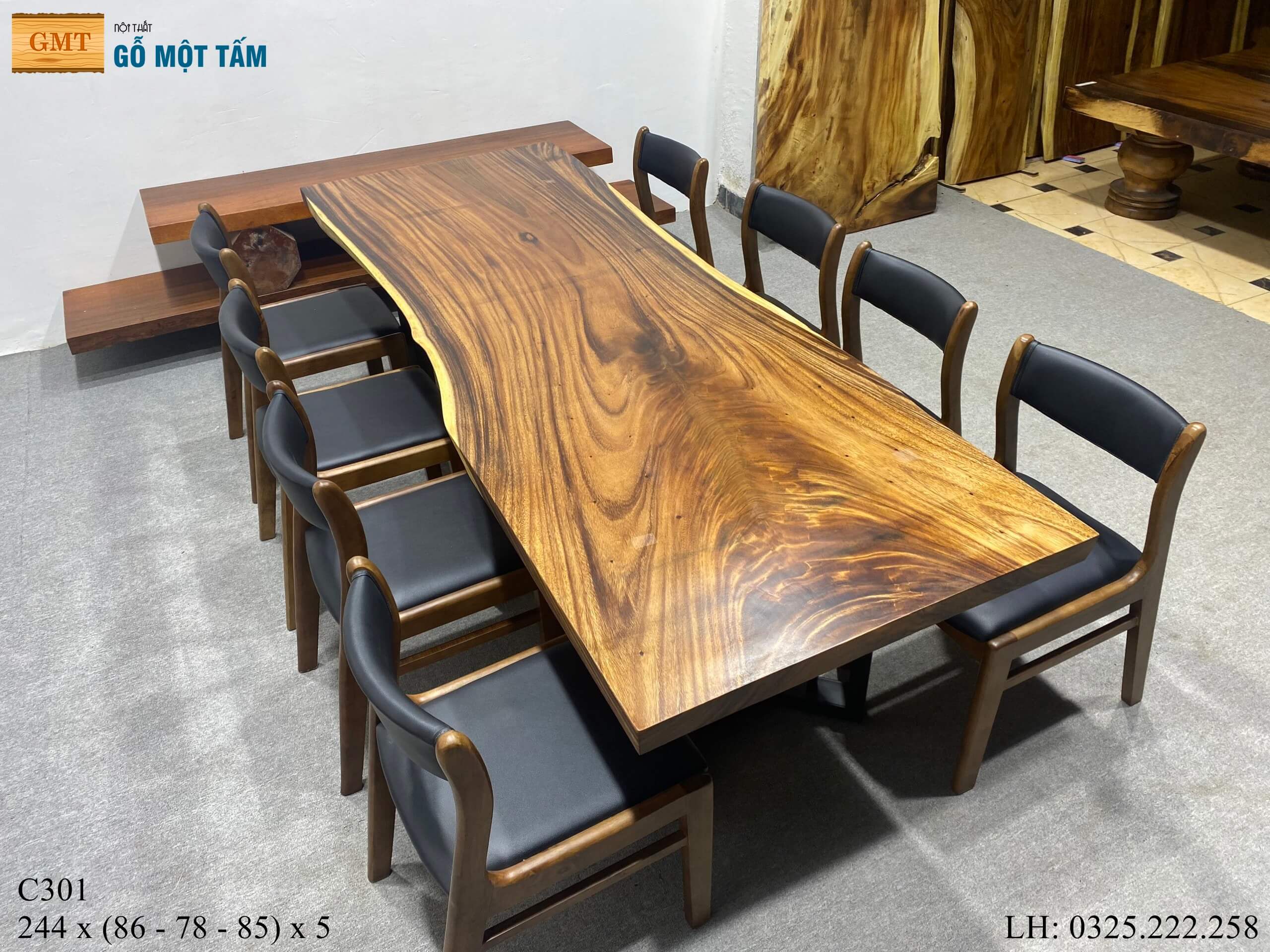Bàn gỗ me tây nguyên tấm cạnh tự nhiên
