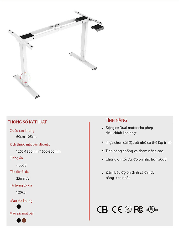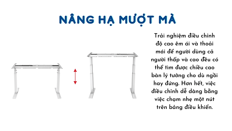 Sử dụng 2 motor: sức nâng tối đa 160kg, phạm vi nâng hạ: 60-125cm, hoạt động êm ái. Cao độ 60cm có thể h