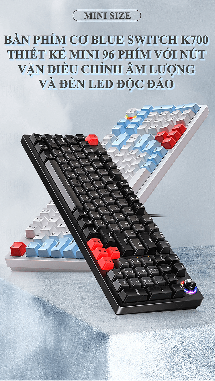 Bàn phím cơ blue switch YINDIAO K700 thiết kế mini 96 phím với nút vặn đa năng có 12 chế độ đèn LED cực đẹp - HT- HÀNG CHÍNH HÃNG
