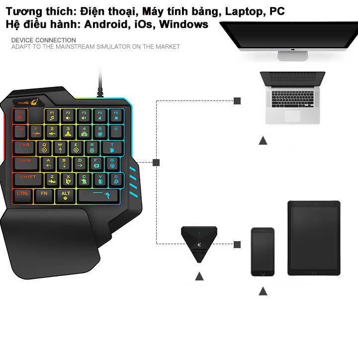 Chiếc Bàn phím giả cơ FREE WOLF K1 tương thích cực kì tốt với Laptop, PC khi cổng kết nối bằng USB cáp. Việc sử dụng loại bàn phím hỗ trợ này giúp bạn trông bro hơn rất nhiều và hơn thế nữa là tha hồ tận hưởng các thể loại Game PC cực dã