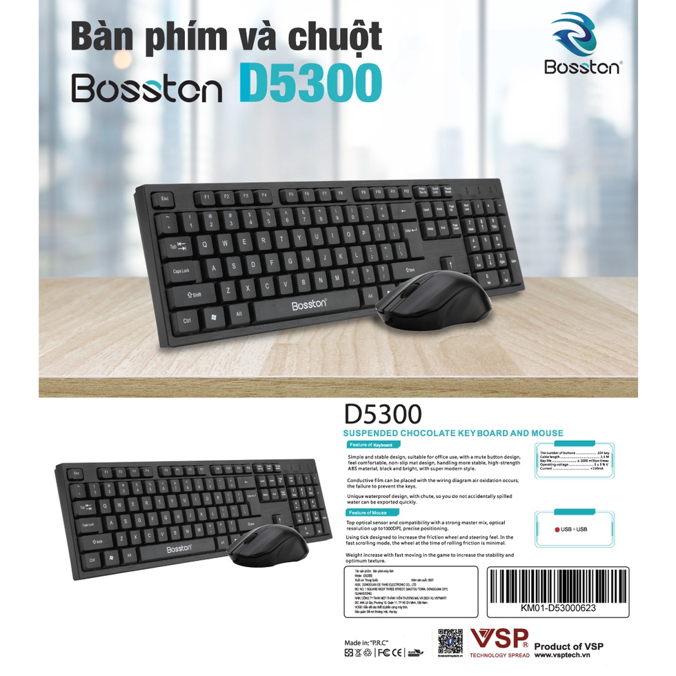 Bộ bàn phím và chuột văn phòng Bosston D5300 có dây (Đen) - Hãng phân phối chính thức