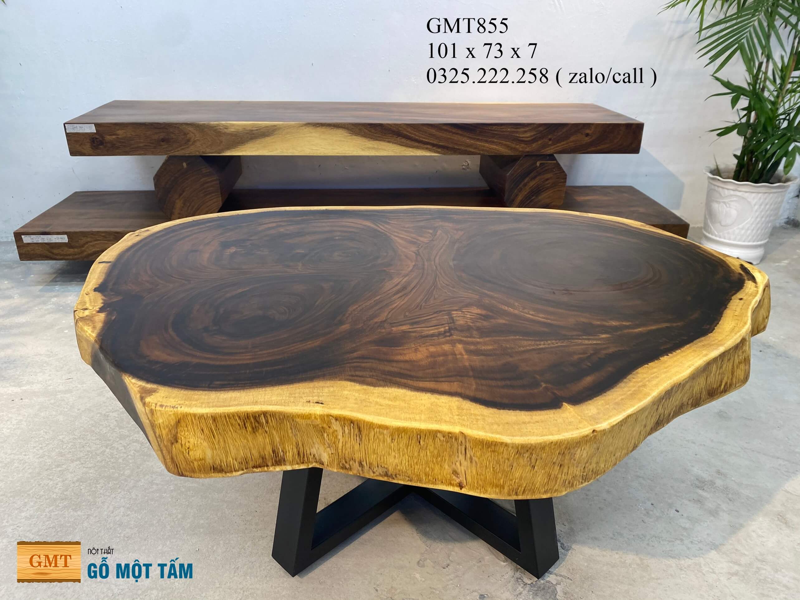 Bàn sofa gỗ me tây nguyên tấm, bàn trà gỗ me tây nguyên tấm, bàn gỗ me tây nguyên tấm dài 1,01m rộng 73cm dày 7cm