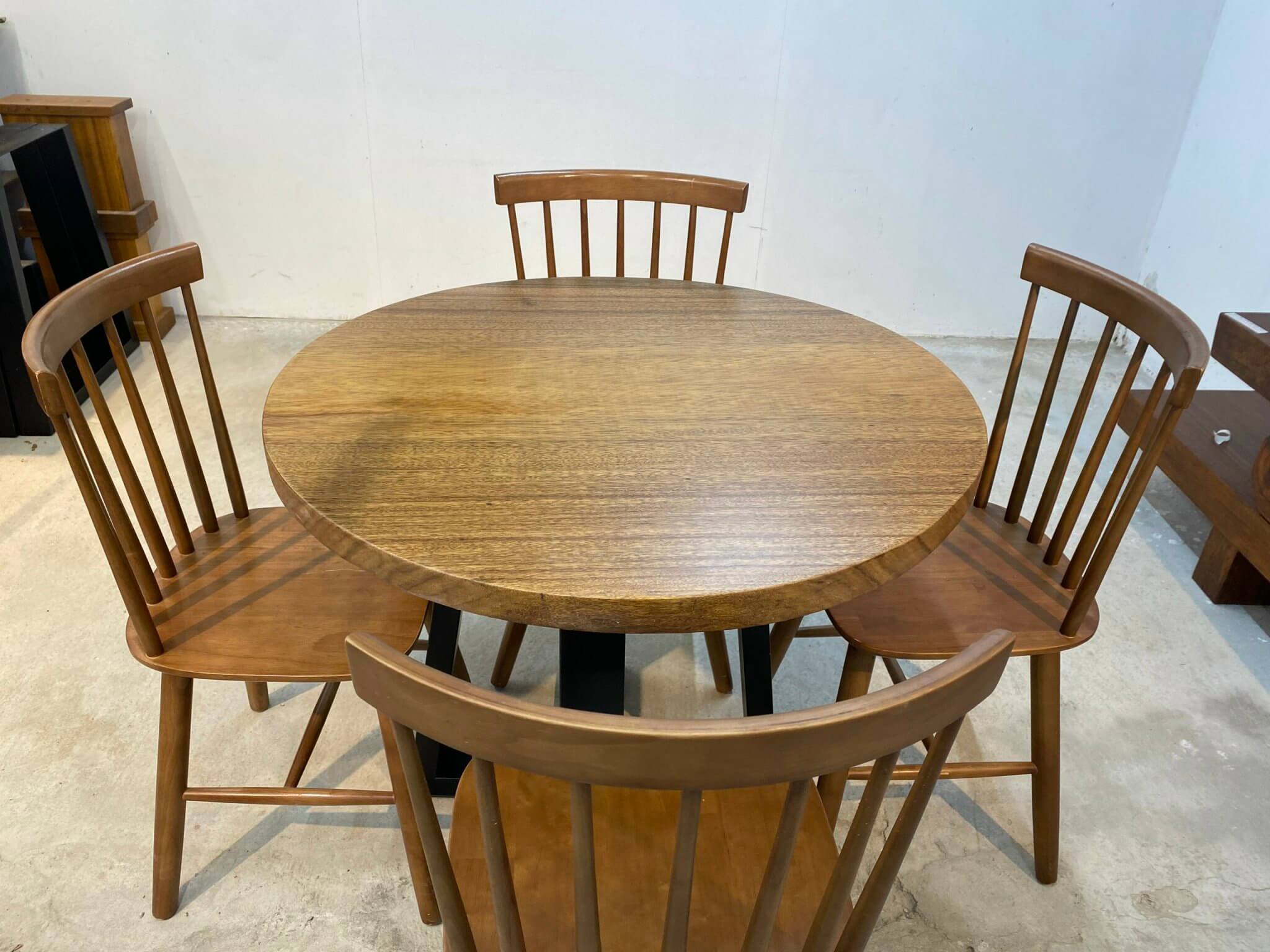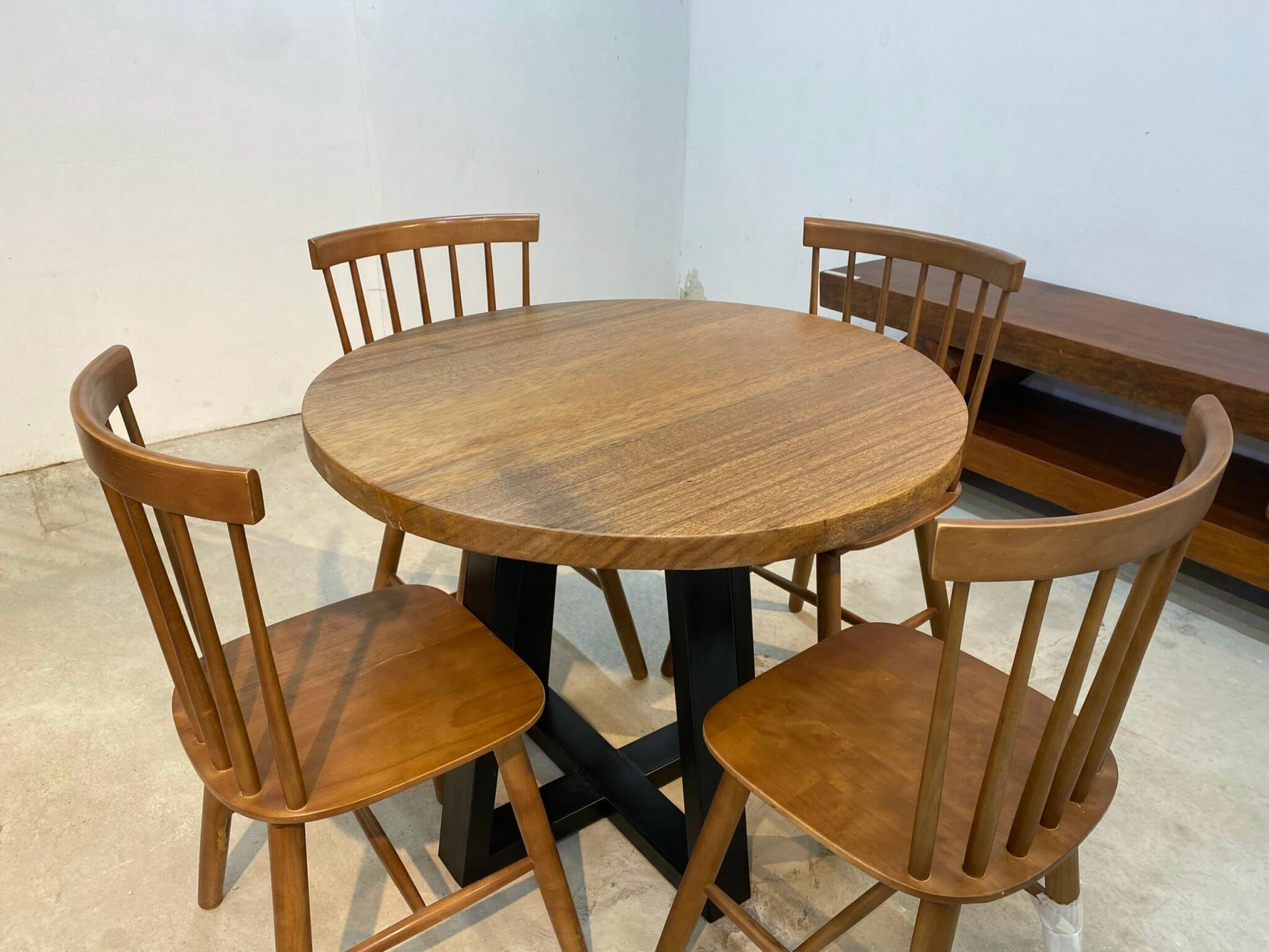 Bàn gỗ lim nâu nguyên tấm cạnh tròn.