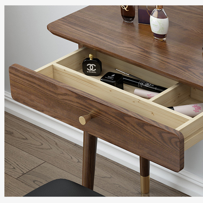 Bàn Trang Điểm Gỗ Tự Nhiên Cao Cấp Kèm Ghế, Bộ Bàn Phấn Đơn Giản Hiện Đại Kèm Gương Màu Nâu KT430x760mm