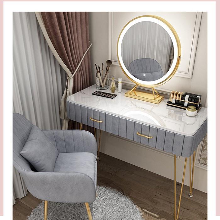 - Mặt bàn phấn là mặt đá dễ lau chùi, vệ sinh, cho thời gian sử dụng lâu dài và tính thẩm mỹ cao