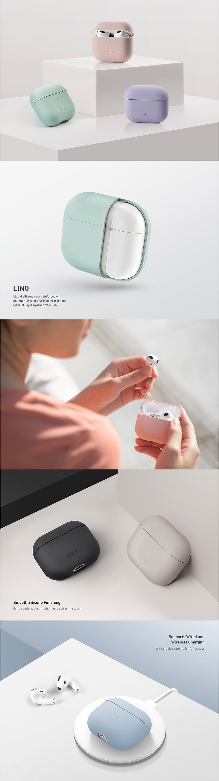 Bên ngoài mềm, bên trong dai. Vỏ silicon lỏng siêu mịn được gia cố bằng kết cấu hỗn hợp hai lớp để bảo vệ chắc chắn, mang lại cảm giác cầm nắm tốt với vẻ ngoài đơn giản tinh tế. Đi kèm với một lớp phủ bên ngoài hoàn thiện mịn như lụa và hỗ trợ cả sạc có dây và không dây.