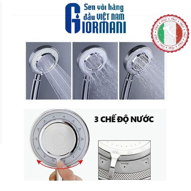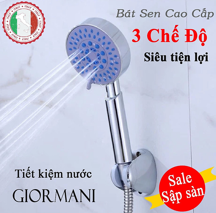 Bát sen tăng áp 3 chế độ + Dây sen 3 lớp 1.5m + Giá đỡ dán tường cao cấp đạt chuẩn chất lượng GIORMANI