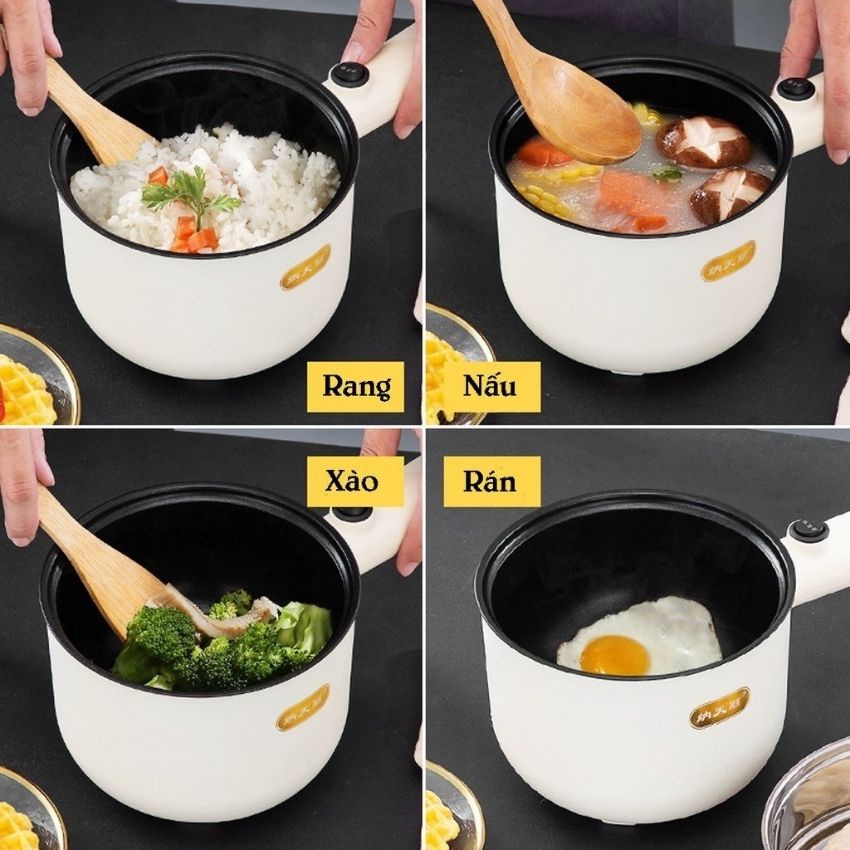 - Nồi điện mini giúp bạn nhanh chóng có được những món ăn ưa thích như: mỳ phở ăn liền, lẩu, các món kho và luộc, nấu cháo, hâm nóng thức ăn, đun nước…