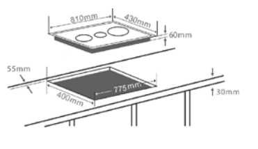 • Kích thước khoét đá 775R x 400S mm
