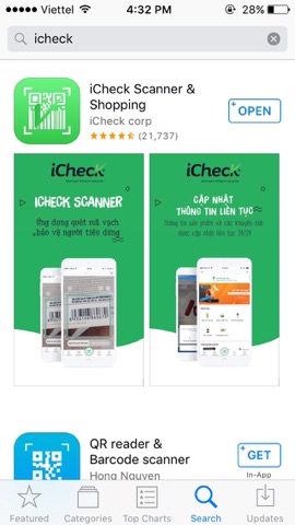 - Cạo lớp giấy bạc theo hình, sử dụng phần mềm icheck để quét mã