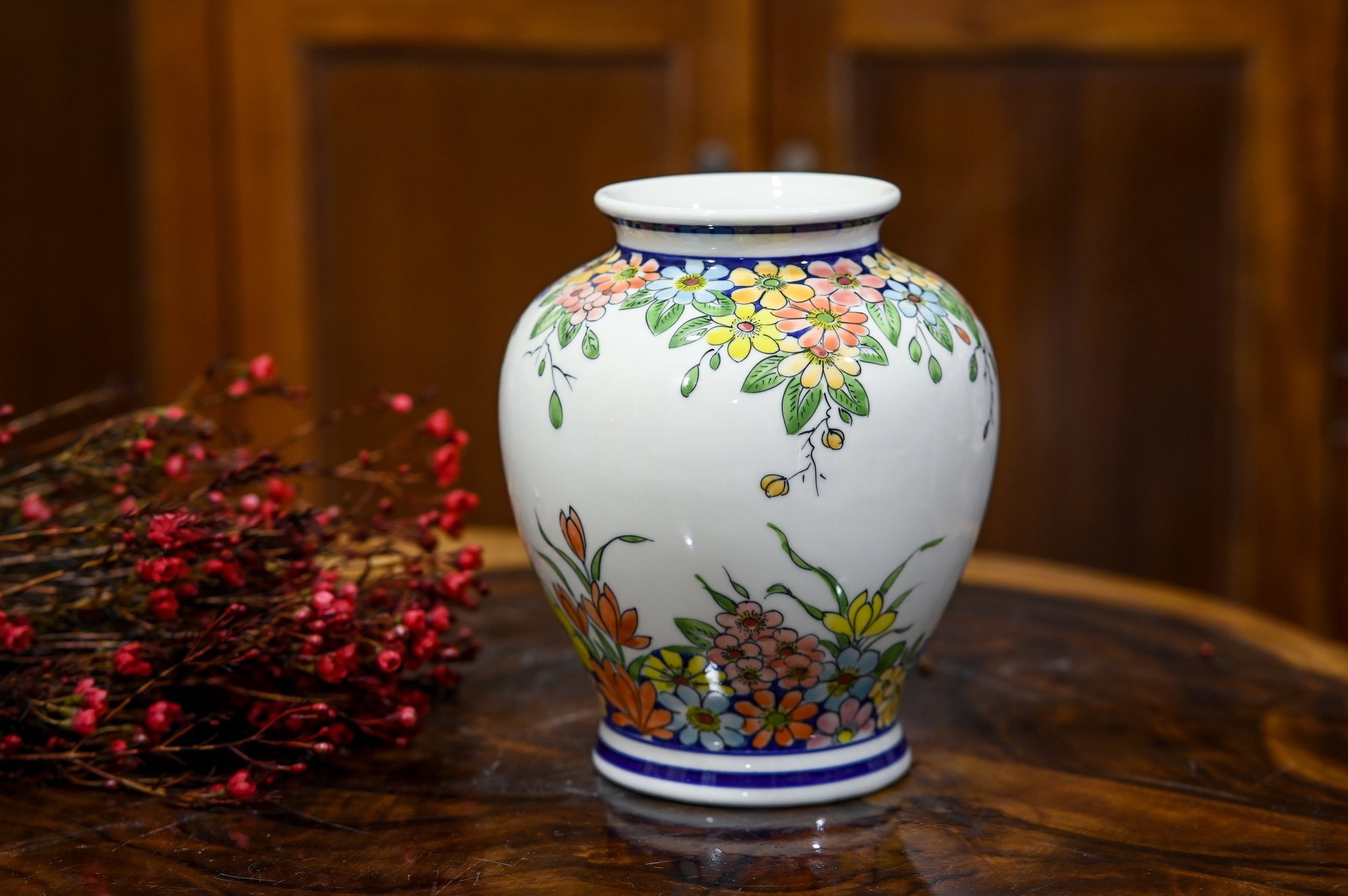 Với bàn tay tài hoa của nghệ nhân làng gốm Bát Tràng, bằng những nét vẽ thủ công tỉ mỉ chau chuốt đến từng mm đã tạo nên mẫu bình cắm hoa- trang trí đẹp mắt.