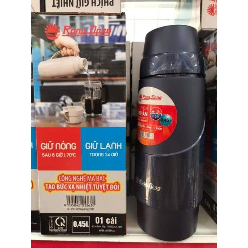 Nhà cửa & Đời sống > Bộ đồ bàn ăn > Bình nước & phụ kiện || Bình giữ nhiệt, phích giữ nhiệt Rạng Đông đựng nước Nóng/lạnh đến 24h dung tích 450ml