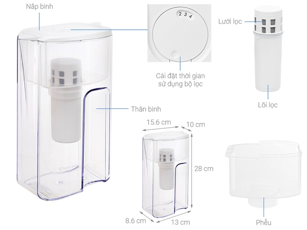 | Mục đích sử dụng | Bình lọc nước cầm tay tiện dụng |