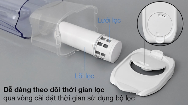 Chỉ bằng cách xoay chỉnh vòng cài đặt thời gian sử dụng bộ lọc trên bình lọc, bạn có thể theo dõi thời gian lọc dễ dàng. Mỗi lần xoay bạn sẽ có mốc 3 tháng, chọn thời gian dùng đúng thời gian bạn lắp bộ lọc mới.