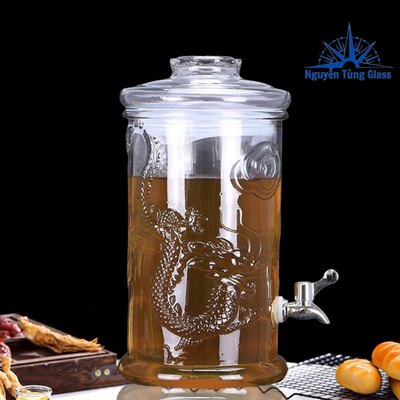 Giới thiệu Bình ngâm rượu thủy tinh trụ rồng 10 lít. có vòi & không vòi