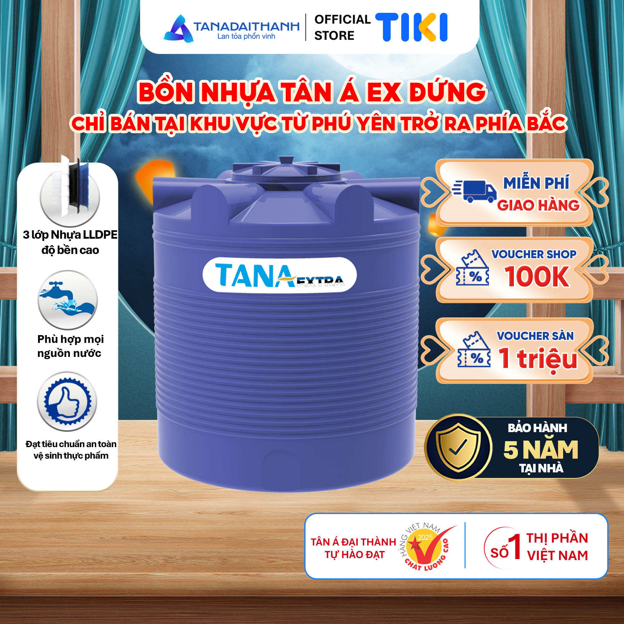 Chỉ dùng để chứa nước sạch sinh hoạt theo tiêu chuẩn của Bộ Y Tế