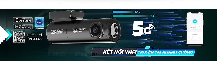 VIETMAP KC01 là sản phẩm Camera hành trình VIETMAP đầu tiên với công nghệ truyền dữ liệu không dây băng tần 5.0 Ghz Giúp việc xem lại, trích xuất video, cập nhật dữ liệu cảnh báo trực tiếp nhanh chóng thông qua ứng dụng VIETMAP REC.