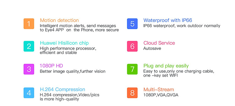Đóng gói: Camera, dây nguồn, cable mạng, ốc vít, sách hướng dẫn (tiếng anh, tiếng trung)