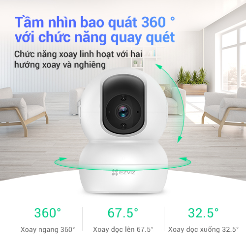 Dễ dàng quan sát toàn bộ không gian của bạn với phạm vi quan sát 360 độ của Camera TY2 cùng tính năng theo dõi thông minh. Bảo an cho bạn - cả ngày lẫn đêm