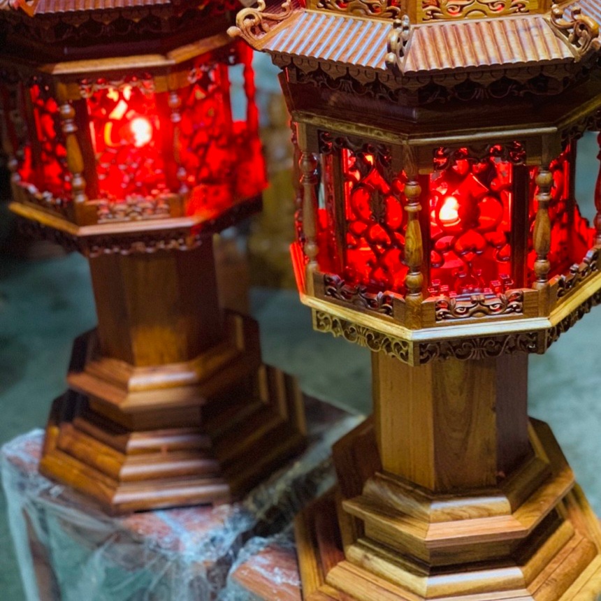 _ Cặp đèn thờ được làm bằng chất liệu gỗ hương tự nhiên 100%
