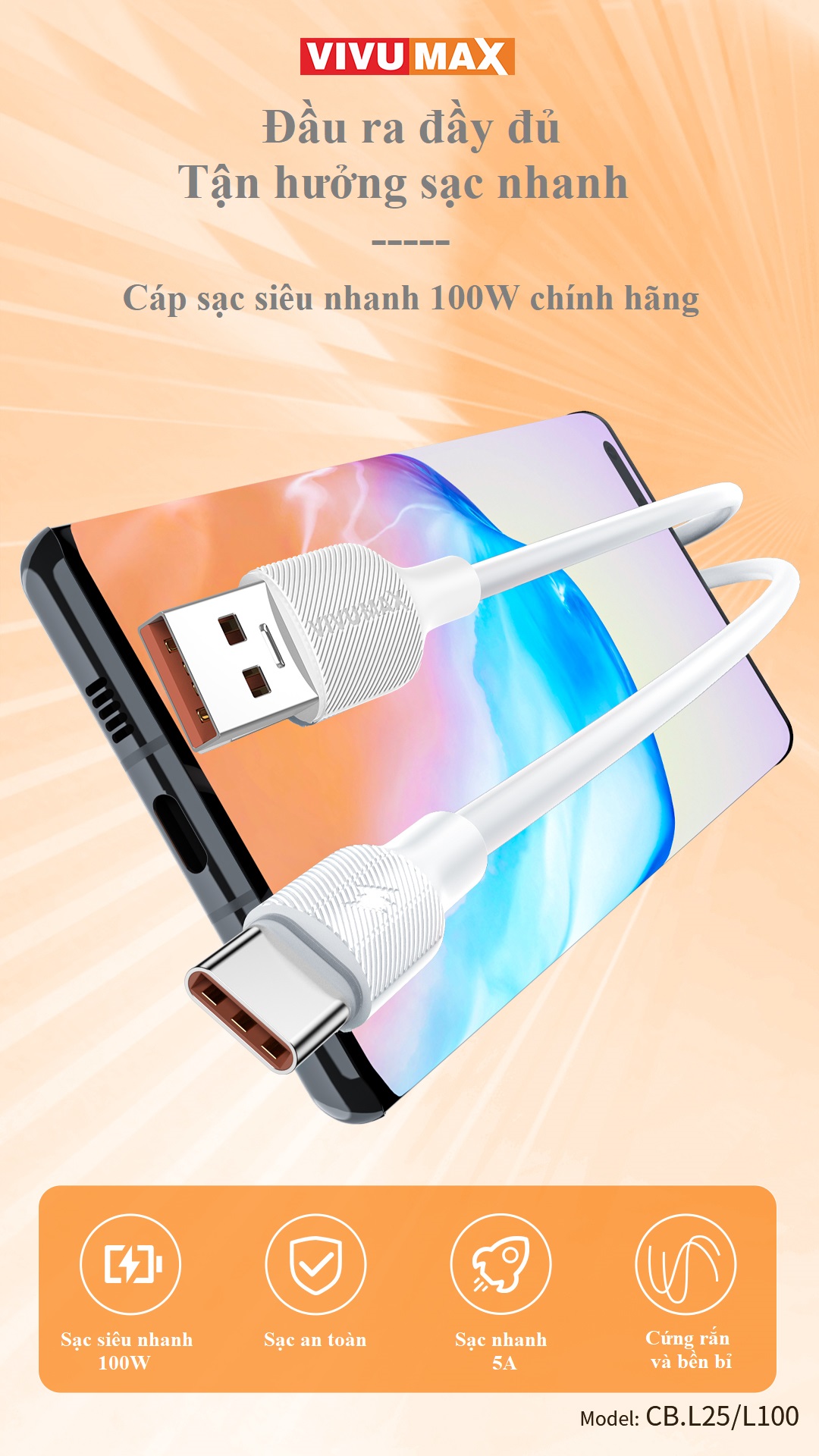 Hãy tận hưởng sạc siêu nhanh 100W, 5A và an toàn của cáp sạc nhanh 5A Vivumax L25m đầu Micro dài 25cm