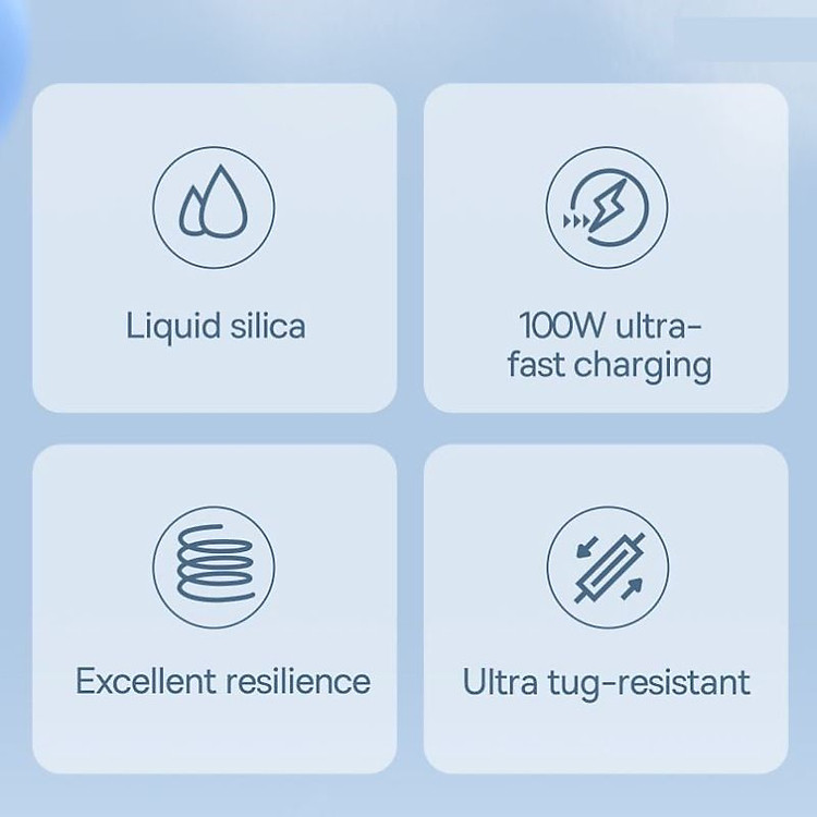 - Cáp Sạc Nhanh Type-C to Type-C 100W Baseus Jelly Liquid Silica Gel Fast Charging Data Cable Trang bị 8 lõi đồng cho khả năng sạc với công suất lên đến 100W phù hợp cho cả điện thoại cũng như laptop.