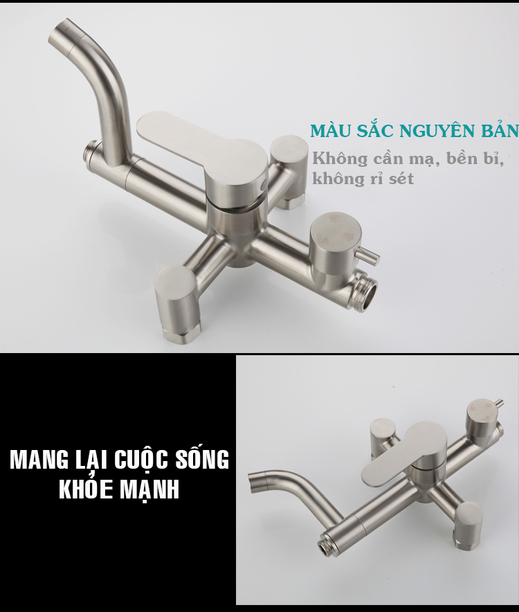 Ưu điểm của vòi inox: (1) Chất liệu thép không gỉ, không chứa chì và là vật liệu an toàn cho cơ thể người. (2) Thân vòi bằng thép không gỉ được sản xuất theo quy trình đúc chính xác. Bề mặt bê...