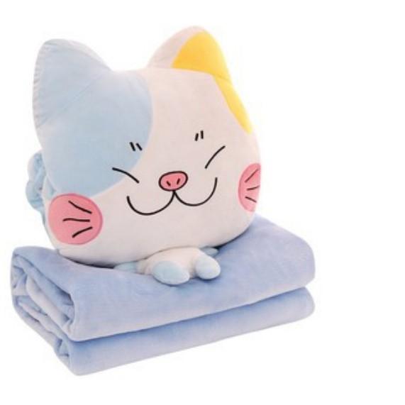 - Bộ chăn gối văn phòng hình mèo siêu đáng yêu. Gấu bông đẹp cho bé 3 trong 1