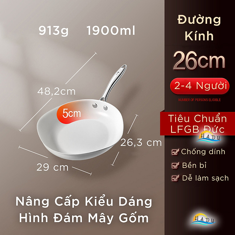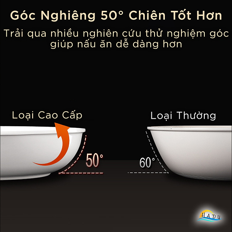 - Thành chảo nghiêm góc 50 độ cho trải nghiệm nấu ăn tốt hơn.