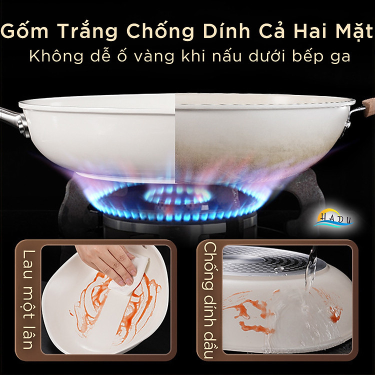 - Gốm Trắng chống dính 2 mặt trong ngoài không dễ bị ố vàng.