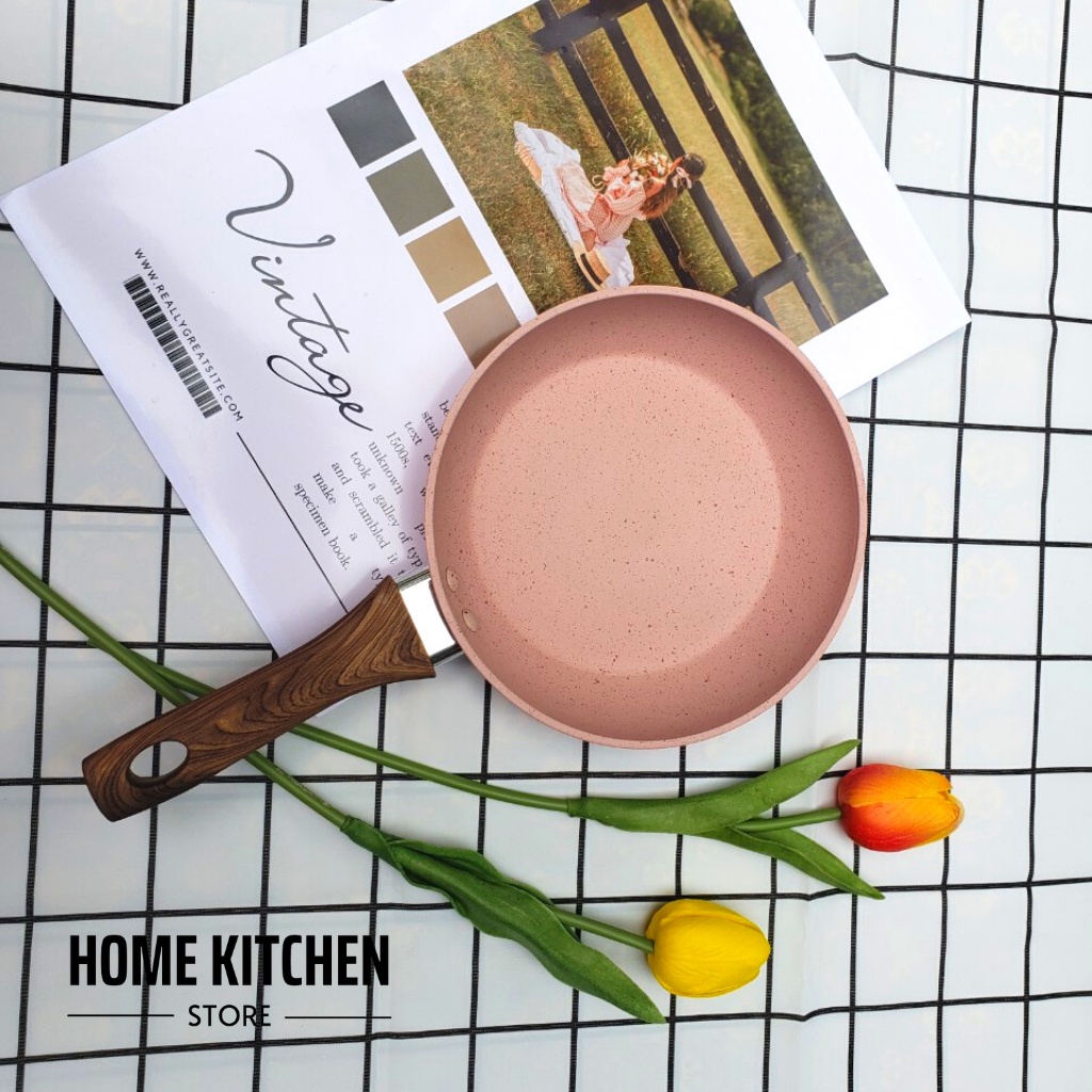 Chảo đá hoa cương, quánh (sâu lòng) chống dính cao cấp 16cm đáy từ màu hồng dùng được cho mọi loại bếp, bếp ga, bếp từ, bếp điện, bếp hồng ngoại
