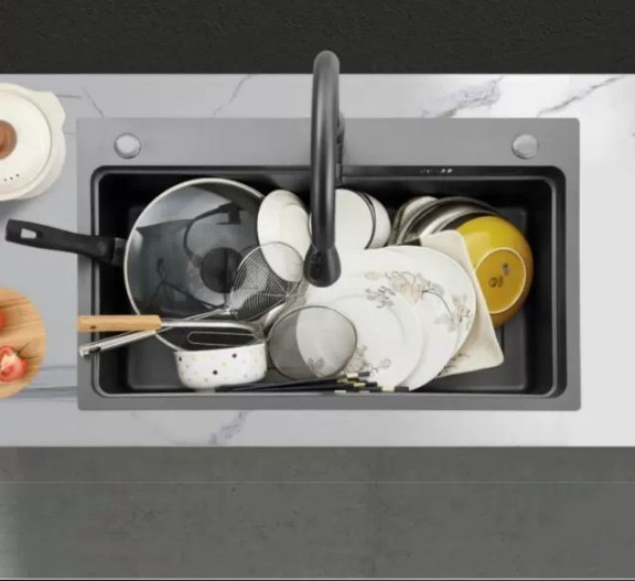 CHẬU RỬA CHÉN INOX 304 MỘT NGĂN MÀU XÁM ĐEN PHỦ NANO SÁNG BÓNG