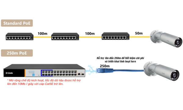 D-link F1010P tích hợp khả năng chống sét lan truyền lên đến lên đến 250m giúp tiết kiệm chi phí khi cấp nguồn ở xa.