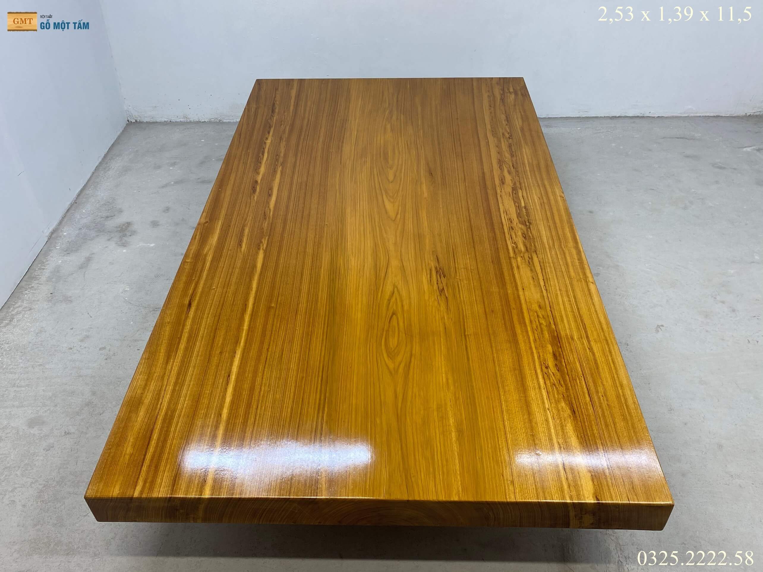 Sản phẩm gồm mặt gỗ nguyên khối + chân gỗ ván nguyên khối.
