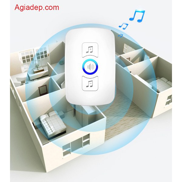 Giới thiệu Chuông cửa không dây ADG-X1 siêu xịn (1 nút bấm dán, treo ngoài cửa + 1 nút chuông cắm ổ điện trong nhà) Tiện dụng