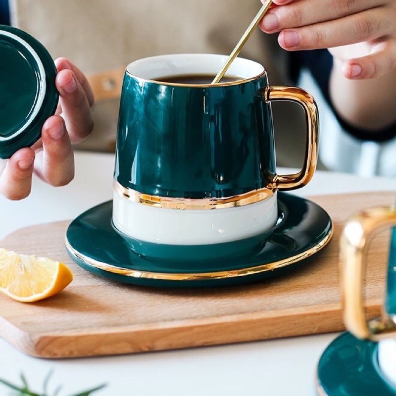 Bộ cốc cà phê sứ cao cấp phong cách Bắc Âu kèm thìa và hộp sang trọng