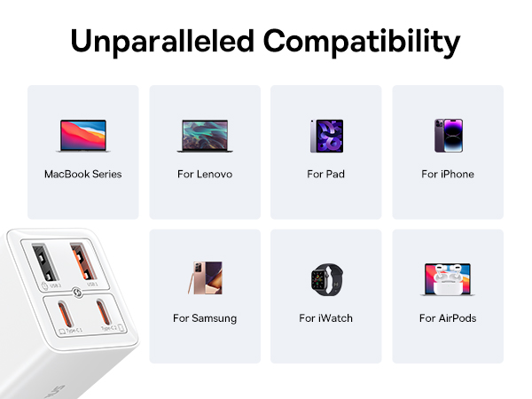 Công Nghệ GaN (Gallium Nitride): Thiết bị sử dụng công nghệ GaN giúp làm giảm kích thước của cốc sạc mà vẫn duy trì công suất và hiệu suất cao, cung cấp lợi ích cho việc di chuyển.