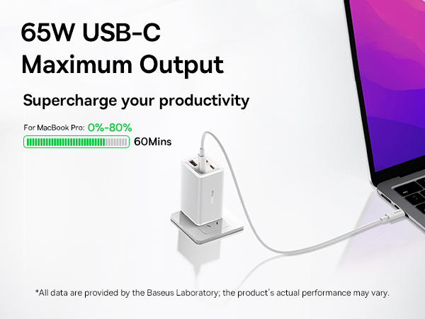 Công Suất 65W: Cốc Sạc Nhanh OS-Baseus GaN6 Pro cung cấp công suất tối đa 65W, đảm bảo sạc nhanh và hiệu quả cho các thiết bị lớn hơn như laptop.